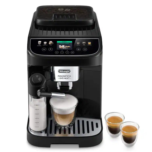 Magnifica Evo Next belichaamt de De'Longhi-ervaring, vakmanschap en technologie voor de beste koffie, telkens weer. Het is geschikt voor elke koffiesmaak met een keuze uit 10 drankjes via de gebruiksvriendelijke interface met gekleurde pictogrammen en TFT-display. Personaliseer je drankjes met 5 verschillende hoeveelheden, 4 intensiteitsniveaus en 3 temperatuuropties, en geniet dankzij de LatteCrema Hot Technology van een fijn, rijk schuim voor al je dranken op basis van melk.