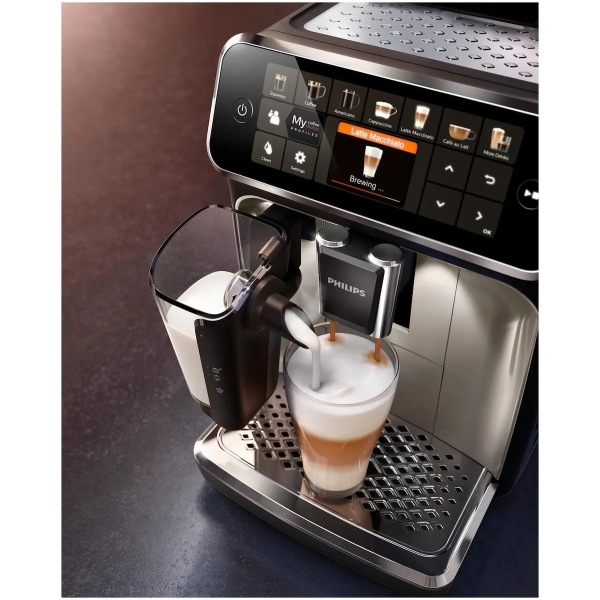 Geniet van heerlijke koffie, zoals espresso, cappuccino en latte macchiato met de Philips 5400-serie met LatteGo, de espressomachine met melkreservoir.